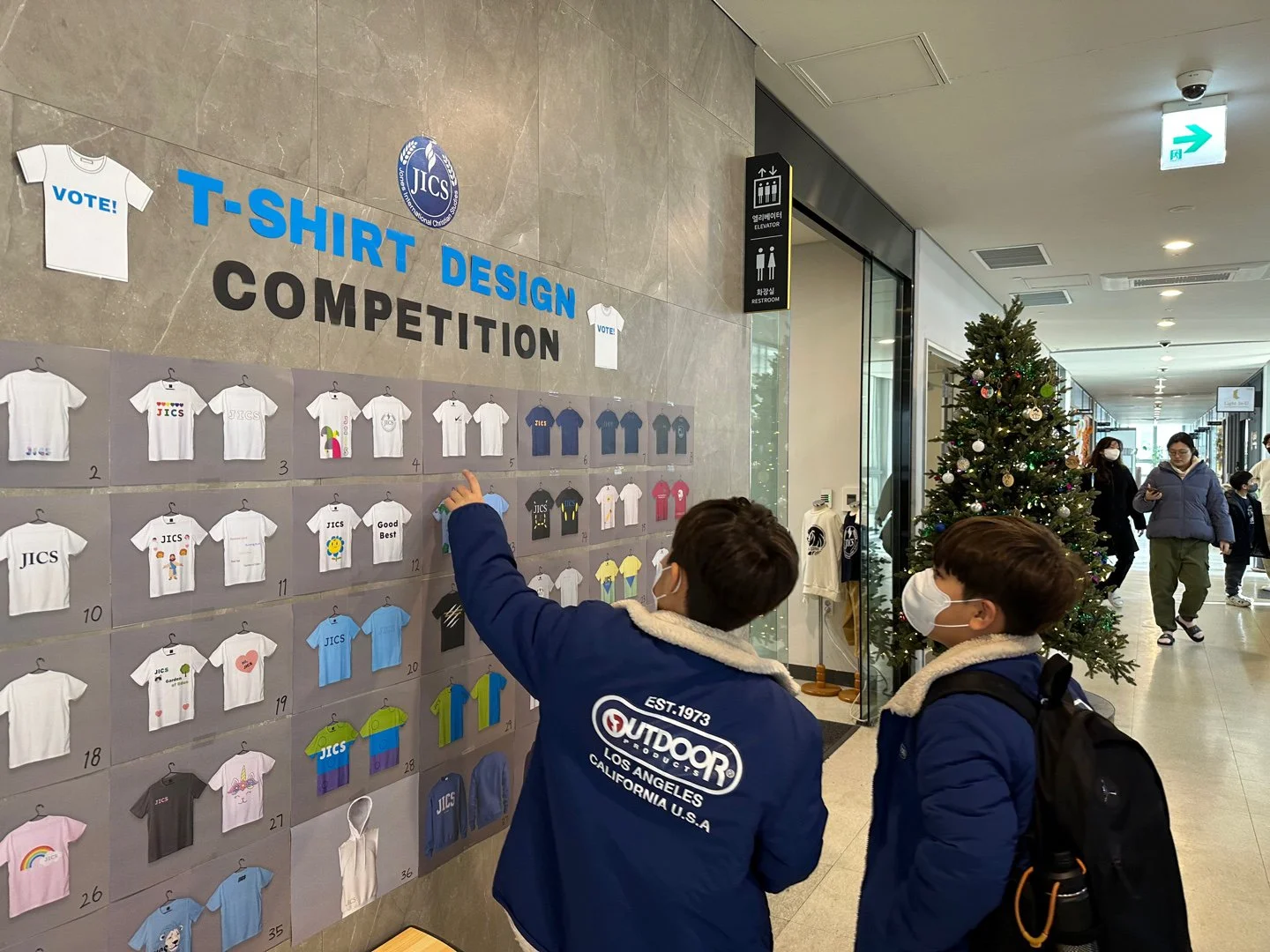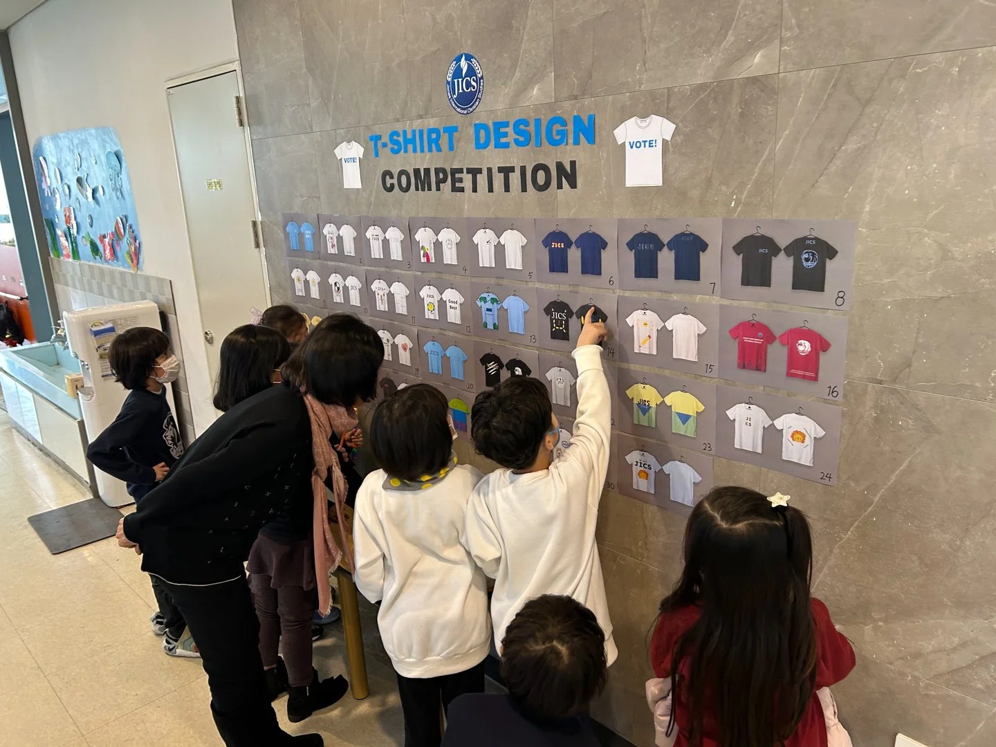 2023년 JICS 티셔츠 디자인 공모전에 JICS 가족 여러분을 초대합니다!! 학생들은 이미 학교에서 상위 3개 디자인에 대한 투표를 시작하였고, 일부 학부모님께서도 디자인에 참여하셨기에 가족 여러분께서 투표에 참여하여주시기 바랍니다.
