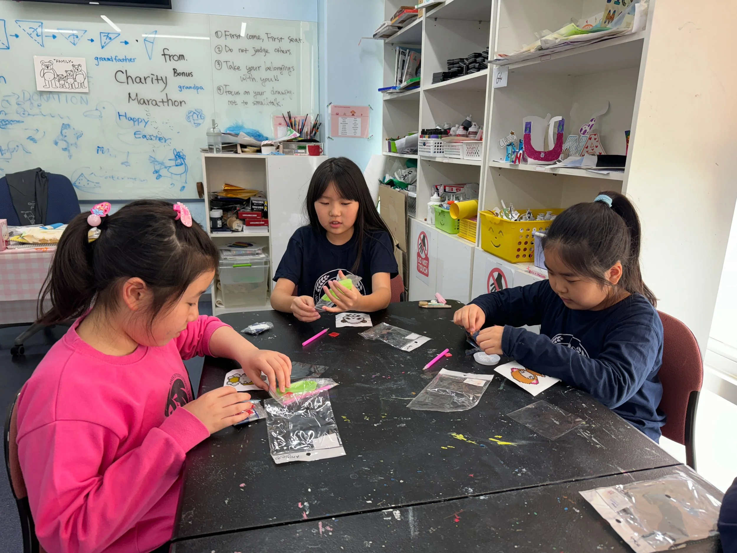 이번 주 3학년 학생들의 추가 점수 도전과제는 영화관에서 ‘쿵푸팬더4’를 영어로 보고, 키오스크를 통해 팝콘 음료를 주문하며, 영화 속 주인공 캐릭터의 프로필을 만드는 것입니다. (예: 외모, 성격, 행동등을 그림으로 그리기) 학생들이 추가 점수를 받을 수 있도록 과제를 하고 있는 사진을 보내주세요.